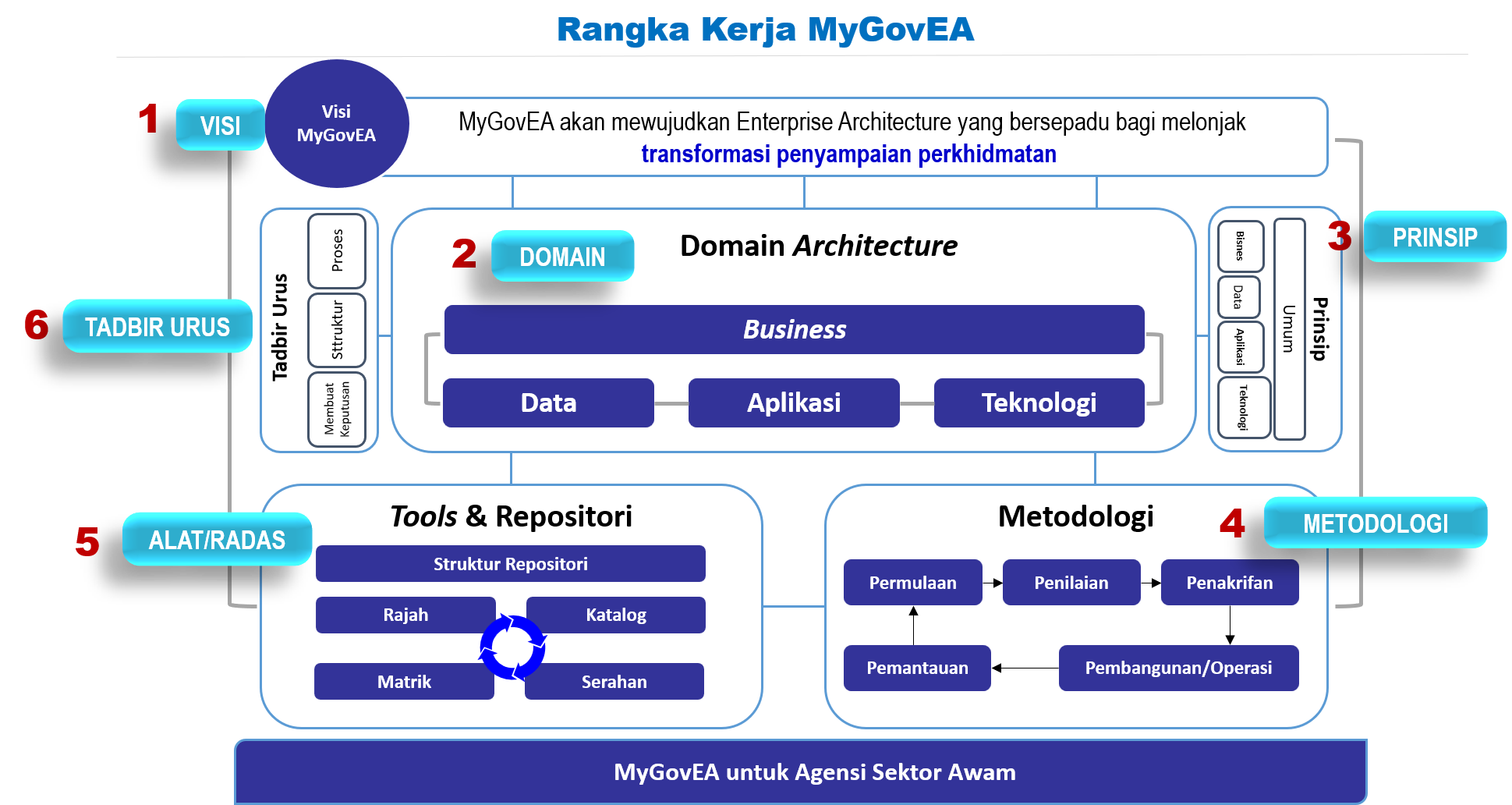 Rangka kerja MyGovEA terdiri daripada 6 komponen utama iaitu: